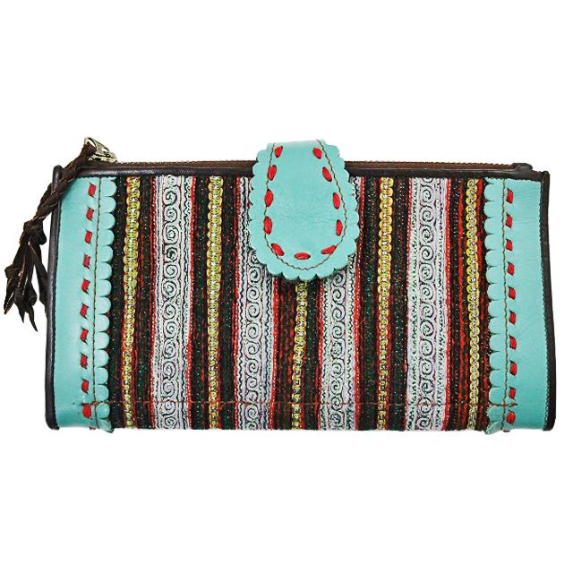 モン族レザー長財布【送料無料/アジアン雑貨/エスニック雑貨/タイ雑貨/一点もの/刺繍ポーチ/通販/ギフト/ラッピング無料】