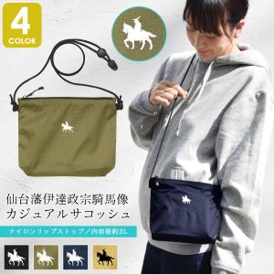 サコッシュ ショルダー バッグ ポシェット 政宗 仙台藩 伊達政宗 騎馬像 プリント レディース メンズ ユニセックス ミニ ライトナイロン