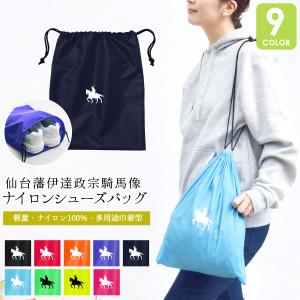 シューズバッグ 政宗 ナイロンバッグ 巾着 巾着バッグ 巾着袋 スポーツ 仙台藩 伊達政宗 騎馬像 プリント レディース メンズ シューズケ