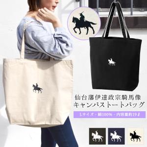 トートバッグ 政宗 大きめ 特大 仙台藩 伊達政宗 騎馬像 マザーズバッグ プリント Lサイズ キャンバス レディース メンズ 大容量 軽量 綿