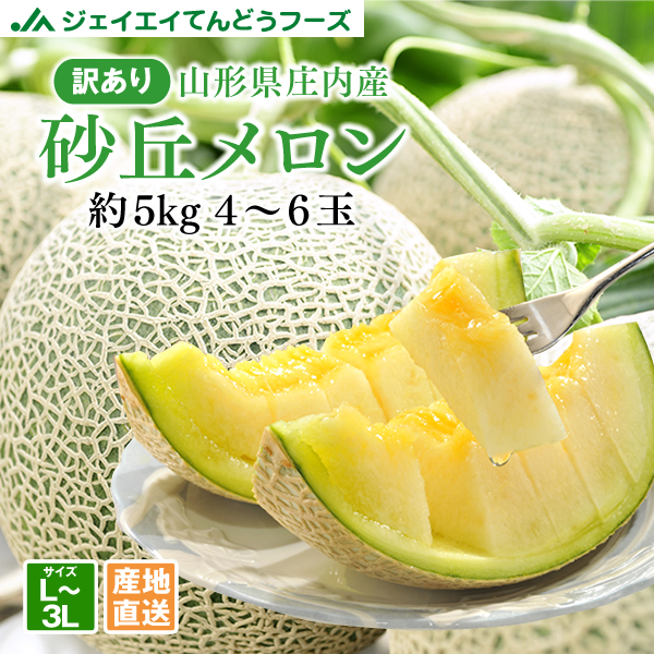 ジェイエイてんどうフーズ ご自宅用 山形県産 庄内 砂丘メロン 良品 約5kg 4〜6玉入り L〜3Lサイズ 訳あり mr09