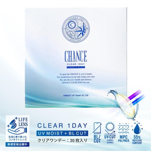 ワンデー コンタクト チャンスクリアワンデー UV モイスト ブルーライト カット BL CUT UVカット 1箱 30枚入り 1日使い捨て 高含水 クリ