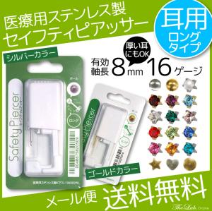 メール便 送料無料 セイフティピアッサー ロングタイプ シルバー ゴールド 片耳用 16G ピアッサー 医療用ステンレス