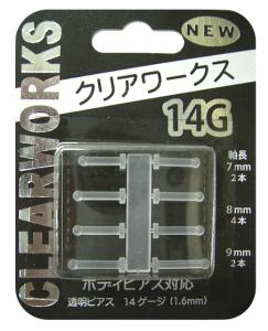 【メール便 送料無料 】クリアワークス 使い捨てピアス (8本入り) ミニバーベルタイプ 透明 14G 透明ピアス