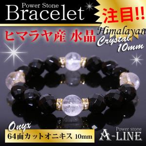 パワーストーン ブレスレット 強力な魔除けや浄化に ヒマラヤ産水晶10mm&64面カットオニキス10mm PW-3447