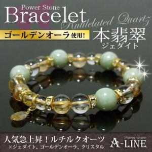 送料無料 パワーストーン ブレスレット ブレストップに金運最強 ルチルクォーツ 本翡翠10mm使用 PW-2483