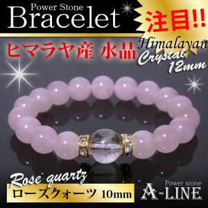 パワーストーン ブレスレット 強力な魔除けや浄化に ヒマラヤ産水晶12mm&ローズクォーツ10mm PW-3446