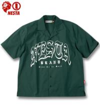 大きいサイズ NESTA BRAND オープンカラー ロゴ プリント 半袖 シャツ グリーン 3L 4L 5L 6L 8L/1277-6230-1-98