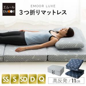 三つ折り マットレス 極厚 11cm セミシングル シングル セミダブル ダブル クイーン EMOOR LUXE 高反発 ウレタン 硬め 体圧分散 コンパク