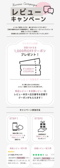 レビュー投稿で1,000円OFFクーポン