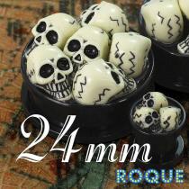 ボディピアス 24mm サクリファイススカル アクリルプラグ[ハイゲージ][耳たぶ][ボディーピアス](1個売り)◆オマケ革命◆