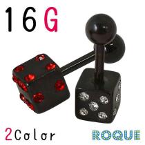 ボディピアス 16G ブラックダイス ストレートバーベル[軟骨ピアス 軟骨用][ボディーピアス](1個売り)◆オマケ革命◆