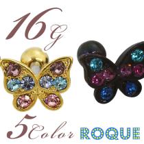 ボディピアス 16G ジュエルパヴェバタフライ バーベル[軟骨ピアス 軟骨用][ボディーピアス](1個売り)◆オマケ革命◆