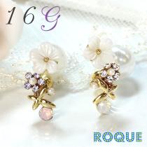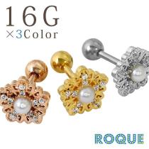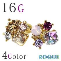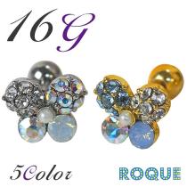 ボディピアス 16G フラワージュエル ストレートバーベル[軟骨ピアス 軟骨用][ボディーピアス](1個売り)◆オマケ革命◆