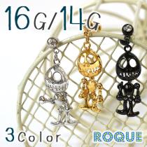 ボディピアス 16G 14G ゆらゆらスカルチャーム ストレートバーベル(1個売り)◆オマケ革命◆