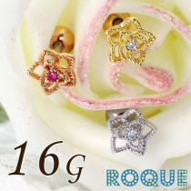 ボディピアス 16G フラワーハートジュエル バーベル[軟骨ピアス 軟骨用][ボディーピアス](1個売り)◆オマケ革命◆