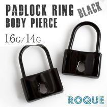 ボディピアス 16G 14G 南京錠モチーフリングピアス フープピアス(ブラック)(1個売り)◆オマケ革命◆