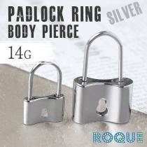 ボディピアス 14G 南京錠モチーフリングピアス フープピアス(シルバー)[軟骨ピアス 軟骨用][ボディーピアス](1個売り)◆オマケ革命◆