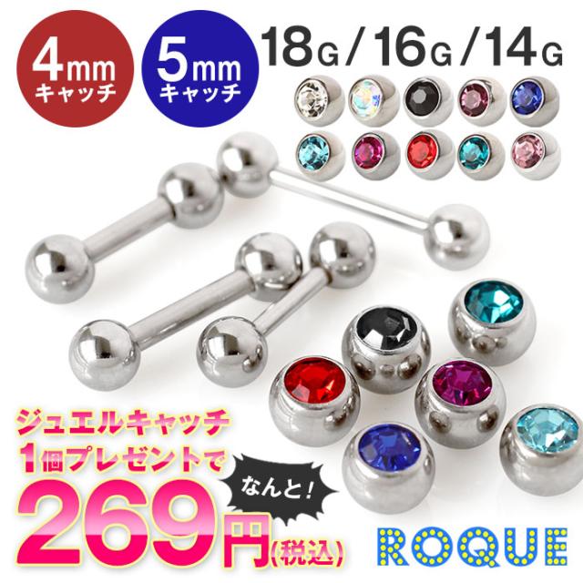 ボディピアス 選べる3サイズ 18G 16G 14G ストレートバーベル【ジュエルキャッチをお一つプレゼント!】(1個売り)◆オマケ革命◆