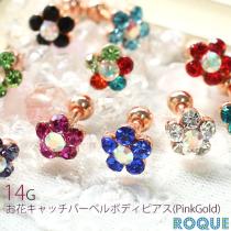 ストレートバーベル ボディピアス 選べる3サイズ 18G 16G 14G カラー【PVDピンクゴールド】ジュエルキャッチをお一つプレゼント!(1個売り