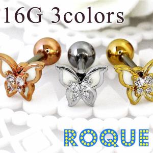 ボディピアス 16G エレガントジュエルバタフライ バーベル[軟骨ピアス 軟骨用 ピアス][ボディーピアス](1個売り)◆オマケ革命◆