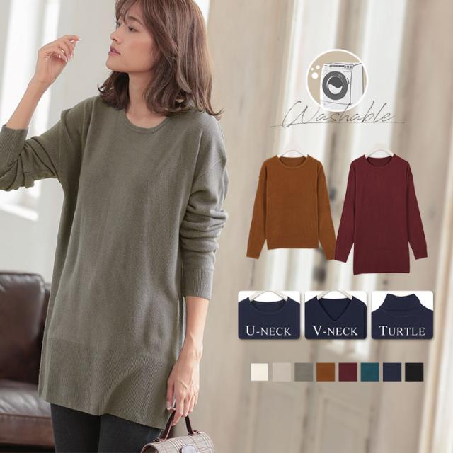 新作 ニット トップス セーター ざっくりニット ニットワンピース N701 入荷済 レディース 長袖 防寒 タートルネック ベーシック [ Vネッ