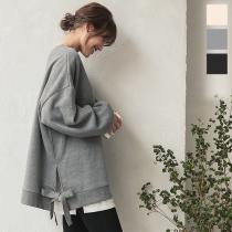 秋新作 サイドリボンビッグ裏起毛スウェットトップス C4192 入荷済 レディース プルオーバー 裏起毛 スウェット ビックシルエ 冬