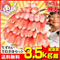 かに 蟹 ずわいがに 生ずわいがに ◆ 特大7L〜5L生ずわい蟹半むき身満足セット 2.7kg超<総重量約3.5kg>【送料無料】【900g×3セットよ