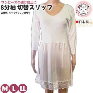 清光ランジェリー 素肌工房 8分袖 切替スリップ シミーズ 1168 M/L/LL | スリップ シュミーズ 長袖 レディース 日本製 透け防止 ランジェ