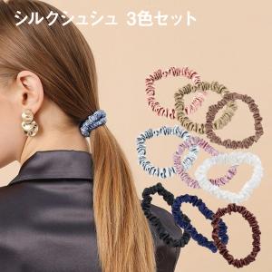 シルク シュシュ ヘアゴム セット 3本セット シルク100% 22匁 大人っぽい 小さめ ヘアゴム シンプル 髪にやさしい 跡が付きにくい ヘアケ