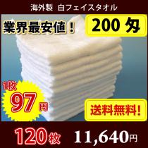 【送料無料】 業界最安値 1枚97円 120枚セット タオル 白タオル 普通のタオル 外国製 200匁 総パイル フェイスタオル 業務用タオル