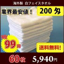 【送料無料】業界最安値 1枚99円 60枚セット タオル 白タオル 普通のタオル 外国製 200匁 総パイル フェイスタオル 業務用タオル 雑巾と