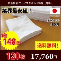 【送料無料】業界最安値! 120枚セット 日本製 泉州 白タオル 薄手 180匁 / タオル 普通のタオル 白いタオル 業務用タオル フェイス 白