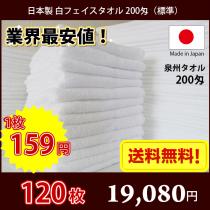 【送料無料】業界最安値! 120枚セット 日本製 泉州 白タオル 200匁 / 標準のタオル 普通のタオル 白いタオル 業務用タオル タオル フェ