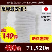 【送料無料】業界最安値! 480枚セット 日本製 泉州 白タオル 200匁 / 標準のタオル 普通のタオル 白いタオル 業務用タオル タオル フェ