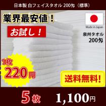 【送料無料】 お試し5枚セット 日本製 泉州 白タオル 200匁 / タオル 普通のタオル 白いタオル 業務用タオル フェイス 白 ホワイト 業務