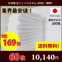 【送料無料】業界最安値! 60枚セット 日本製 泉州 白タオル 200匁 / 標準のタオル 普通のタオル 白いタオル 業務用タオル タオル フェイ