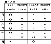 ※シフトが変更になる場合もございますので何卒ご了承ください。