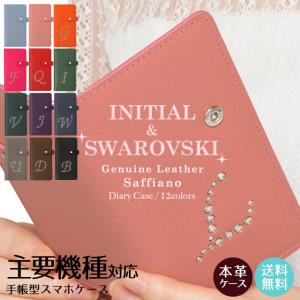 ▼サフィアーノレザーにスワロフスキーでイニシャルやニコちゃんを大きくかたどった手帳型ケース