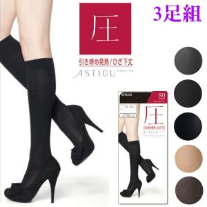 3足組 アツギ 膝下丈 80デニール タイツ 【圧】 アスティーグ ストッキング 静電気防止加工 光触媒加工 光発熱加工 日本製 ATSUGI FS5