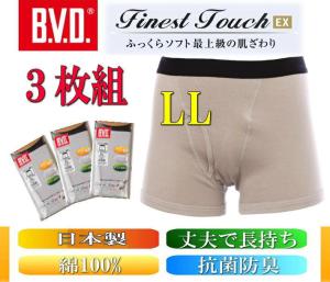BVDボクサーパンツ(3枚組)LL【日本製】【Finest Touch】