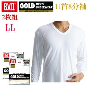 【2枚組】LL BVD GOLD U丸首8分袖紳士インナーシャツ【B.V.D】G018-2P