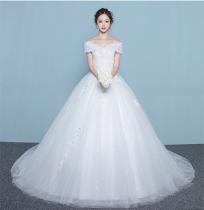 体型カバー ウェディングドレス トレーン オフショルダー 結婚式 披露宴 オーダーサイズ可 お得ベール,パニエ,グローブ3点セット付 H019