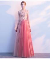 高品質 パーティドレス ロングドレス ワンピース ナイトドレス シングル肩 ノースリーブ ピンク 結婚式 二次会 発表会 演奏会 D127