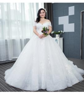 ウェディングドレス オフショルダー Aライン 体型カバー マタニティ XS~8XL 大きいサイズ パニエグローブベール付 オーダーサイズ可BH011