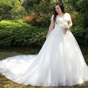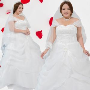 格安 ウェディングドレス 白 大きいサイズ 2XL〜5XL マタニティ オーダーサイズ可能 パニエ ベール グローブ3点セット付 BH012