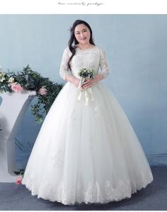お得ベール パニエ グローブ付 大きいサイズ レース ウェディングドレス マタニティ Aライン 7分袖 結婚式 オーダーサイズ可 BH003