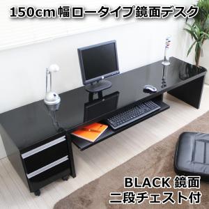 鏡面仕上げ ロータイプ パソコンデスク 2点セット ブラック 日本製 JS122BK