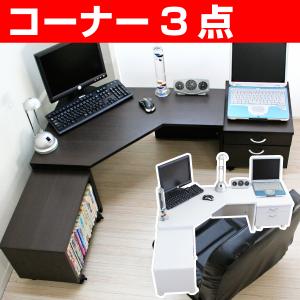 パソコンデスク 文机 座卓 ローデスク ロータイプ l字型 3点セット 木製 ブラック TCP344