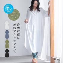 【P10倍】【送料無料】『汗がしみにくいシャツワンピース』※メール便可※【10】[ワンピース レディース シャツワンピース 半袖 汗じみ防